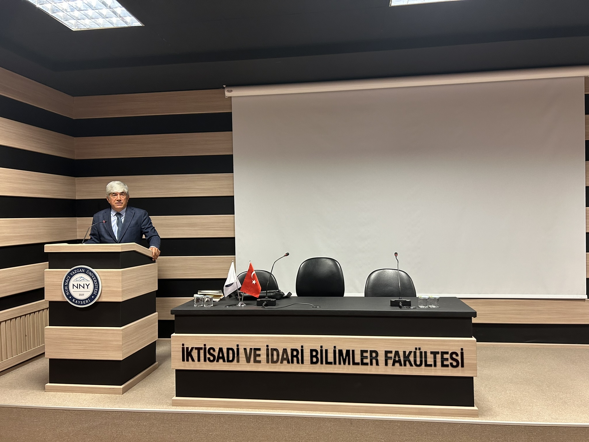 Erciyes Üniversitesi İlahiyat Fakültesi Öğretim Üyesi Prof. Dr. Mustafa ÜNAL, Rektörümüz Prof. Dr. Ahmet Fazıl ÖZSOYLU, dekanlar, akademik ve idari personelin katıldığı, Üniversitemiz İktisadi ve İdari Bilimler Fakültesi Salonunda düzenlenen konferansta, “15 Temmuz Gölgesinde Türk Demokrasisinde Darbeler” konulu bir konuşma yaptı.