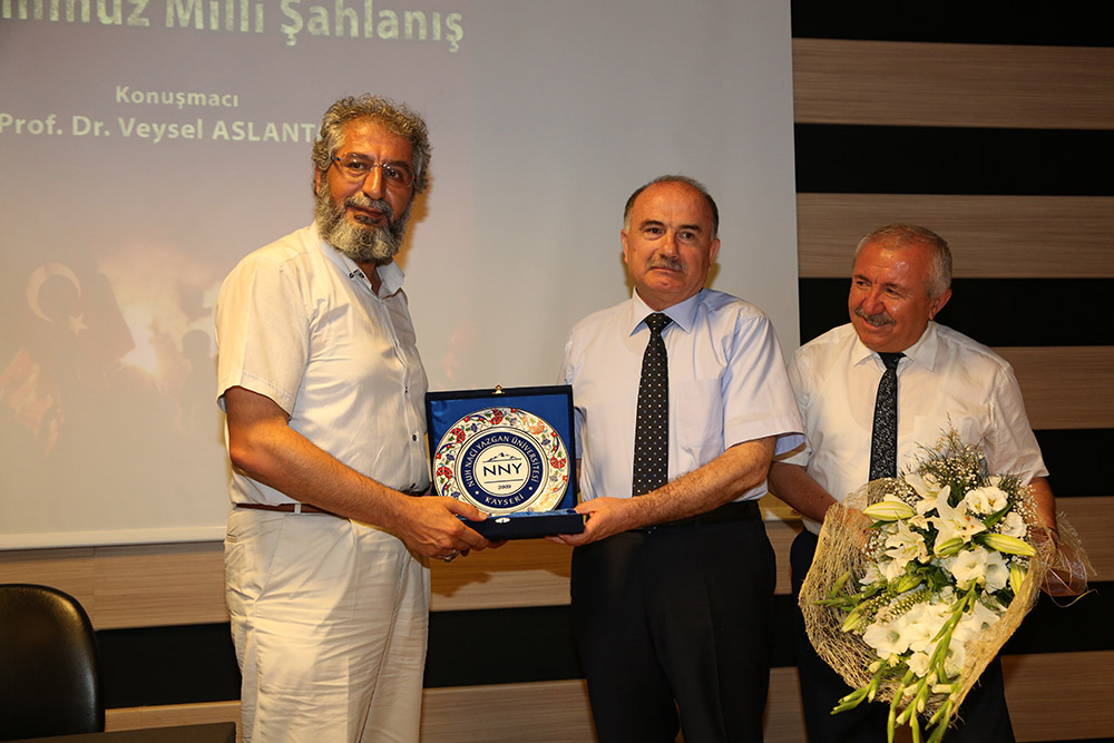 İktisadi ve İdari Bilimler Fakültesi Salonunda düzenlenen konferansa Erciyes Üniversitesi Öğretim Üyesi Prof. Dr. Veysel Aslantaş konuşmacı olarak katıldı. Saygı duruşu ve İstiklal Marşı’nın okunmasının ardından Prof. Dr. Veysel Aslantaş “15 Temmuz Milli Şahlanış” konulu konferans verdi. Prof. Dr. Veysel Aslantaş, 15 Temmuz Darbe Girişiminin tarihi süreç, oluşum ve süreçle ilgili örnekler vererek açıklamalarda bulundu.