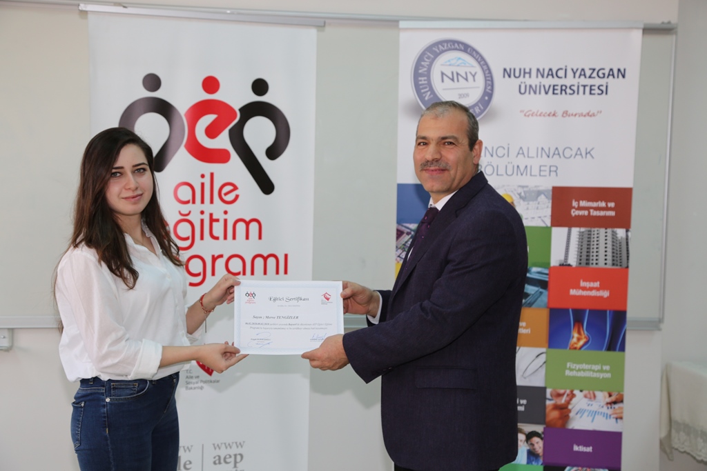 Aile Eğitim Programı Eğitici Eğitimi sonunda yapılan sınavda başarılı olan kursiyerlere Aile ve Sosyal Politikalar Bakanlığı onaylı sertifika verildi.