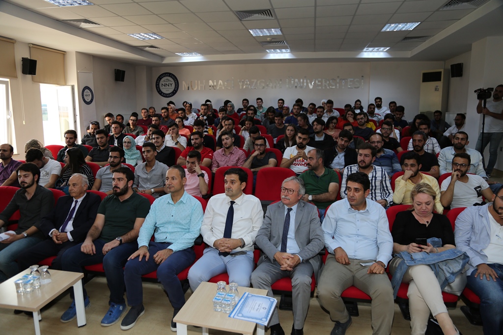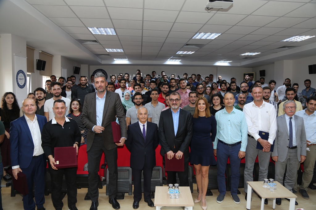 Üniversitemiz Rektör Yardımcısı Prof. Dr. Zeki Yılmaz, Mühendislik Fakültesi Konferans Salonunda düzenlenen program sonunda Hüseyin Beşok, Aydın Şerbetcioğlu, Ayhan Avcı, Ayşenur Alkaya, Gökhan Türe ve Gökhan German’a plaket takdim etti.