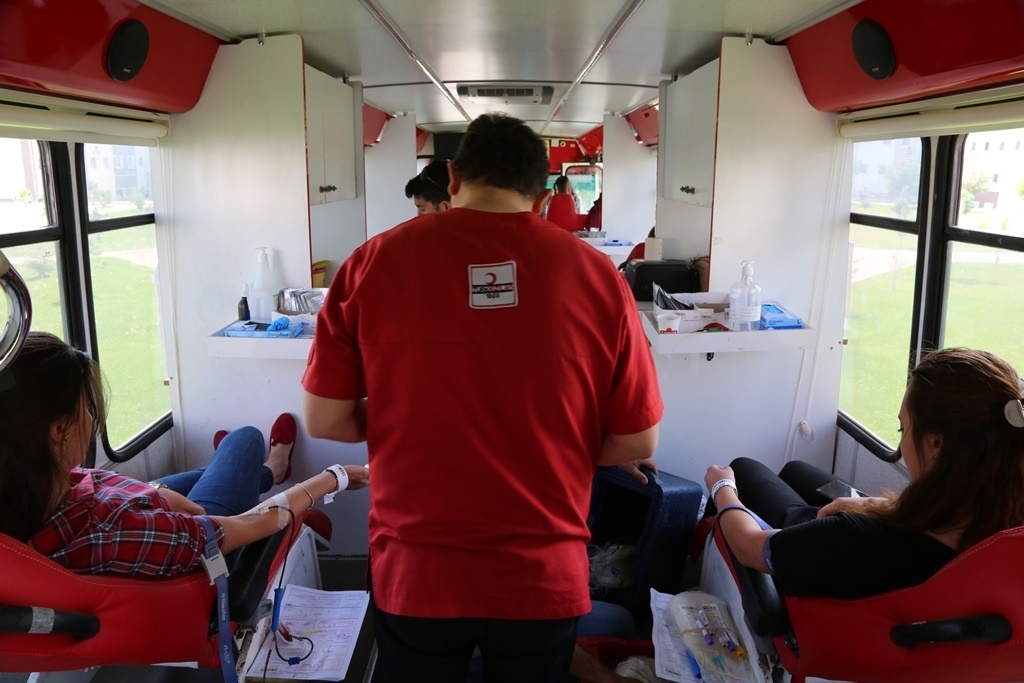 Üniversitemiz Kampüs alanında kurulan Türk Kızılay´ı aracında kayıt formunu dolduran öğrenciler, öğretim üyeleri ve idari personel daha sonra sırayla kan verdi. Üniversitemizde gün boyu süren etkinlikte Türk Kızılay´ına toplam 80 ünite kan ve 60 kök hücre bağışında bulunuldu.