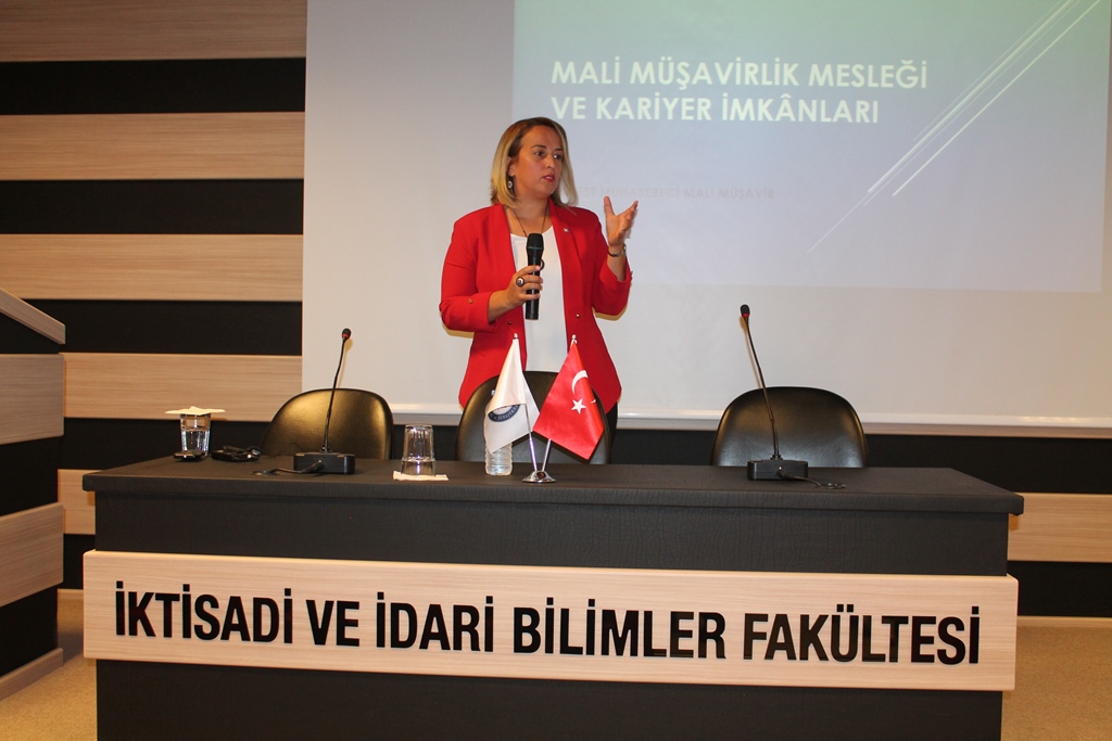 Açılış konuşmasından sonra Serbest Muhasebeci Mali Müşavir Şengül Kezik, “Mali Müşavirlik Mesleği ve Kariyer İmkânları” konulu konferansta öğrencilerle mesleki bilgilerini ve tecrübelerini paylaştı. Şengül Kezik, “Başarılı bir iş insanı olabilmeniz için üniversitede hedefinizi belirlemeli ve o hedef doğrultusunda kendinizi geliştirmelisiniz. Yılmadan, pes etmeden, özverili bir şekilde çalışmak hedeflerinize ulaşmanız için son derece önemlidir. Günümüzde kariyerli ve gözde bir meslek olan Mali Müşavirlikte yaşam boyu eğitim olmazsa olmazımızdır.” şeklinde konuştu. Staja başlama sınavı ile başlayan, 3 yıllık staj ve sonrasında bitirme sınavları ile mali müşavirlik ruhsatını almaya hak kazanan meslek mensuplarının, bağımsız olarak kendi bürolarını açabilecekleri gibi bağımlı olarak işletmelerde de çalışabileceklerini belirten Kezik, mesleğin gençler için gelecek vaat ettiğini vurguladı.