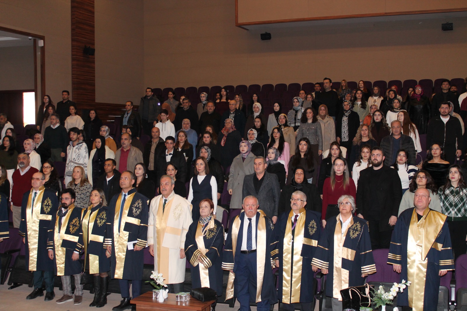 Süleyman Çetinsaya Kültür Merkezi’nde düzenlenen törene saygı duruşu ve İstiklal Marşı'nın okunmasıyla başlandı. Törene Rektörümüz Prof. Dr. Ahmet Fazıl ÖZSOYLU, Rektör Yardımcısı Prof. Dr. Neriman İNANÇ ve Rektör Yardımcısı Prof. Dr. Erkan KÖSE, dekanlar, akademisyenler, öğrenciler ve aileleri katıldı.