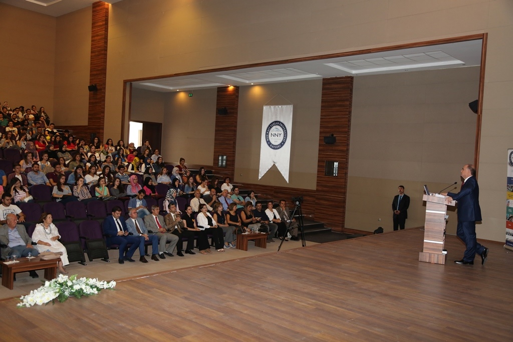 Yoğun sınav maratonundan sonra bu yıl Üniversitemiz bünyesine katılan öğrencilerin tanışma ve kaynaşmasını sağlamak, üniversite ortamına ve çevreye uyumlarını kolaylaştırmak, üniversitenin misyonu, vizyonu ve sunduğu imkanlar ile akademik ve idari birimlerin çalışmaları hakkında bilgiler vermek amacıyla düzenlenen Tanışma ve Oryantasyon Etkinliği Süleyman Çetinsaya Kültür Merkez’inde başladı. Etkinliğin açılış programına Üniversitemiz Mütevelli Heyet Başkanı Mustafa Nevzat Özhamurkar, Rektörümüz Prof. Dr. Kerim Güney, dekanlar, öğretim üyeleri ve öğrenciler katıldı. Saygı duruşu ve İstiklal Marşı’nın okunmasıyla başlayan etkinliğinin açılış konuşmasını Rektörümüz Prof. Dr. Kerim Güney yaptı. Üniversitelerini tercih ettikleri ve öğrenim hakkı kazandıkları için öğrencileri ve ailelerini tebrik eden Rektörümüz Prof. Dr. Kerim Güney, “Üniversitemize hoş geldiniz” dedi. Üniversitelerin uygarlık yarışında bir ülkenin öncü kurumları olduğunu belirten Rektörümüz Prof. Dr. Kerim Güney konuşmasında şunları söyledi: “Üniversiteler, kültürde, medeniyette, bilimde araştırmada, teknolojide, yenilikte öncü rol oynarlar ve lokomotif görevi üstlenirler. Nuh Naci Yazgan Üniversitesi olarak hedefimiz dünya standartlarında eğitim, öğretim ve araştırma faaliyetleri yürütmek ve bu araştırma faaliyetlerinden elde edilen bilgiyi teknolojiye, toplumsal ve ekonomik faydaya dönüştürmektir. Eğitim açısından düşünüldüğünde modern eğitim metotları uygulayarak, çağın gerektirdiği, bilgi ve becerilere sahip, araştırmacı, paylaşımcı, girişimci, kendine güvenen ve inanan, toplumsal ve etik değerlere saygılı, sosyal ve kültürel yönden güçlü bireyler yetiştirmektir. Bizim öncelikli hedeflerimizden biriside mezunlarımızın iş arayan değil, kendi, işlerini kuran ve bu şekilde istihdam oluşturan kişiler olarak topluma fayda sağlamalarıdır. Üniversitemizin kuruluş aşamasından beri şu dört hususu çok önemsiyoruz. Kendi bölümünüzle ile ilgili temel bilgilere sahip olacaksınız ve bir konuda uzmanlaşacaksınız. Bilişim teknolojilerine hakim olacaksınız. Bir yabancı dil, hatta iki yabancı dil bileceksiniz. Yurt dışı tecrübesine sahip olacaksınız. Biz bunları sağlayabilmek için her türlü imkana sahibiz. Üniversitemiz fiziki alt yapısı ve donanımıyla gelişmiş çağdaş eğitim veren özgün bir bilim yuvasıdır.”