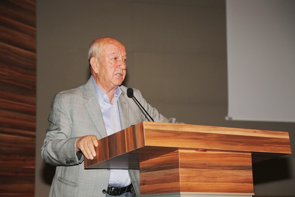 Üniversitemiz Mütevelli Heyet Başkanı Mustafa Nevzat Özhamurkar da konuşmasının başında Kayseri Yükseköğrenim ve Yardım Vakfı tarafından kurulan Üniversitenin kuruluş aşamaları ile Nuh Naci Yazgan’ın hayatı hakkında öğrencilere bilgiler verdi. Tecrübelerini öğrencilerle paylaşan ve önemli tavsiyelerde bulunan Özhamurkar, “Eğitimle, bilgiyle, tatbikatı bir araya getirebilirseniz aşamayacağınız hiçbir yol yoktur. Birde azim şarttır. Bir yerde “olmadı, ne yapacağım, olmuyor işte” yok. Nasıl oluyorsa çaresini bulmaya çalışacaksınız. Hayatta para kaybedebilirsiniz, işinizi kaybedebilirsiniz, zarar edebilirsiniz ama bir süre sonra tekrar telafi edip yeniden daha iyi noktalara gelebilirsiniz. Ama zamanın kıymetini çok iyi bilin. Her şeyi geri getirebilirsiniz ama bugün kaybettiğiniz, boşa harcadığınız zamanı geri getiremezsiniz. Burayı daha iyi yerlere getirmek için emek harcayan bizlerin bir tek hedefi var. Nasıl daha iyi imkanlarla gençlerimizi yetiştirir, bu vatan bizim, bu bayrak bizim, bu millet bizim, bu millete faydalı fertler haline getirebiliriz. Bazı sıkıntılar olmaz mı? Olur. Ama bunlar ne bizleri nede sizleri yıldırmamalı” dedi. Konuşmasını, iş hayatına başladığında babasının kendisine verdiği öğütle bitiren Özhamurkar, “Ok gibi doğru olursan hedefe varırsın, yay gibi eğri olursan elde kalırsın. Bu hayat felsefesi içimde daha dün söylenmiş gibi durur. Doğru olun, doğru ölün” dedi.