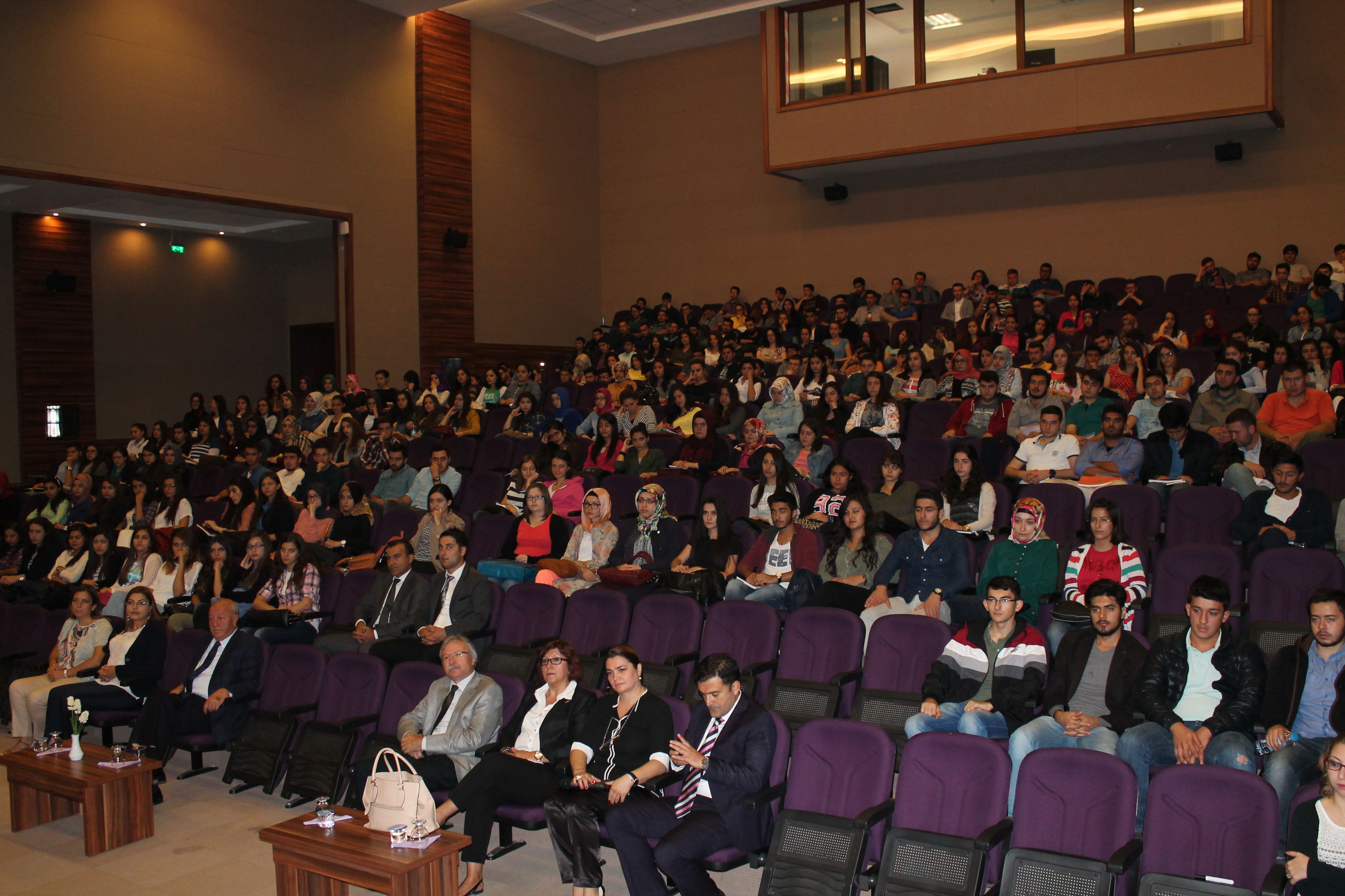 Süleyman Çetinsaya Kültür Merkezi’nde düzenlenen Tanışma ve Oryantasyon Programına Üniversitemiz Mütevelli Heyet Başkanı Mustafa Nevzat Özhamurkar, Rektörümüz Prof. Dr. Kerim Güney, dekanlar, öğretim üyeleri ve öğrenciler katıldı. Programın açılış konuşmasını yapan Rektörümüz Prof. Dr. Kerim Güney, Üniversitemizi tercih ettikleri ve öğrenim hakkı kazandıkları için öğrencilere ve ailelerine teşekkür etti. Üniversitelerin uygarlık yarışında bir ülkenin öncü kurumları olduğunu, kültürde, medeniyette, bilimde, teknolojide, araştırmada, inovasyonda öncü rol oynaması ve lokomotif görevi üstlenmesi gerektiğini belirten Rektörümüz Prof. Dr. Kerim Güney, Üniversitemizin fiziki altyapı donanımıyla gelişmiş, çağdaş eğitim veren özgün bir bilim yuvası olduğunu söyledi. Rektörümüz Prof. Dr. Kerim Güney konuşmasına şu şekilde devam etti: “Bizim Üniversite olarak hedefimiz, dünya standartlarında eğitim, öğretim ve araştırma faaliyetlerini yürütmektir. Modern eğitim metotları uygulayarak çağın gerektirdiği bilgi ve becerilere sahip, araştırmacı, girişimci, paylaşımcı, ekip çalışmasında başarılı, kendine inanan ve güvenen, küreselleşen dünyadaki gelişmeleri iyi okuyup anlayabilen, problemlere doğru, hızlı ve esnek çözümler üretebilen, vatanına milletine, ailesine faydalı, sosyal ve kültürel yönü güçlü, kendi kültürünü iyi bilen ve özümseyen, bu kültürü koruyarak evrensel değerleri benimseyen bireyler yetiştirmektir. Mezunlarımızın iş arayan değil, kendi işlerini kuran ve bu şekilde istihdam yaratan girişimciler olarak ülke ekonomisine katkıda bulunmalarını sağlamaktır.”