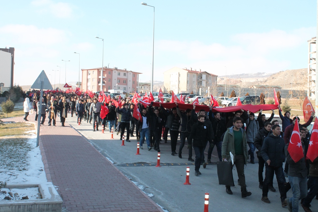 17 Aralık 2016 Cumartesi günü İlimizde gerçekleştirilen hain bombalı terör saldırısı, Üniversitemizde düzenlenen “Terörü Tel’in Yürüyüşü” ile protesto edildi.
