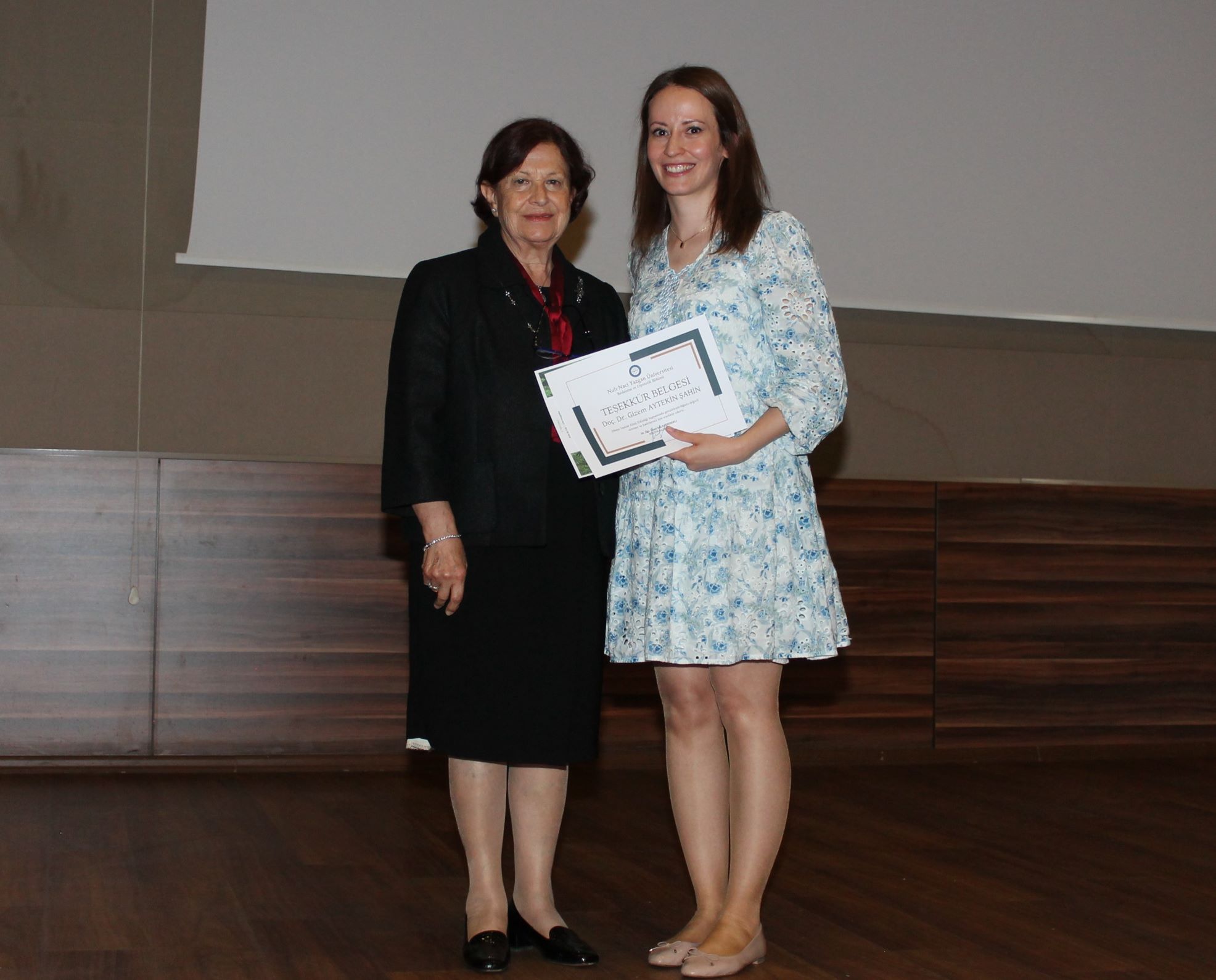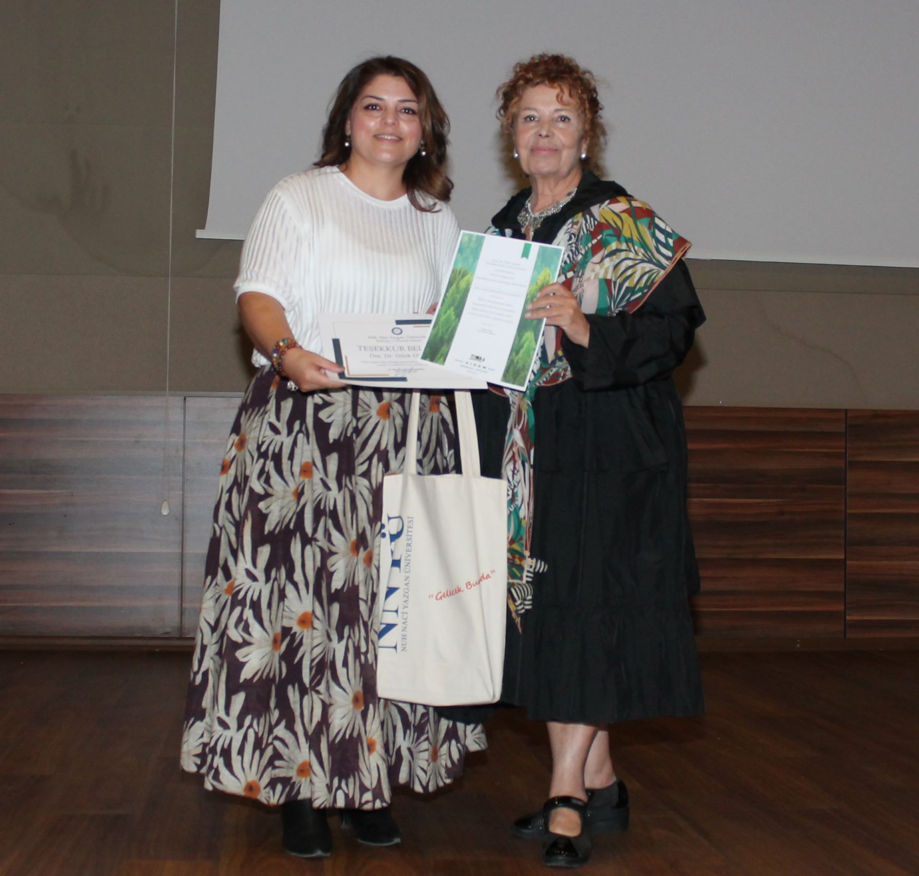 Gazi Mustafa Kemal Atatürk’ün “Bir milletin yaşlı vatandaşlarına ve emeklilerine karşı tutumu; o milletin yaşama kudretinin en önemli kıstasıdır. Geçmişte çok güçlüyken, tüm gücüyle çalışmış olanlara karşı minnet hissi duymayan bir milletin, geleceğe güvenle bakmaya hakkı yoktur” sözünün de vurgulandığı etkinliğe katkılarından dolayı, TEMA Vakfına 5’er fidan bağışlanan konuşmacılar ONGAN ve ŞAHİN’e sertifika ve teşekkür belgeleri Üniversitemiz Rektör Yardımcısı Prof. Dr. Neriman İNANÇ ile Üniversitemiz Beslenme ve Diyetetik Bölümü Öğretim Üyesi Prof. Dr. Mualla AYDIN tarafından takdim edildi.