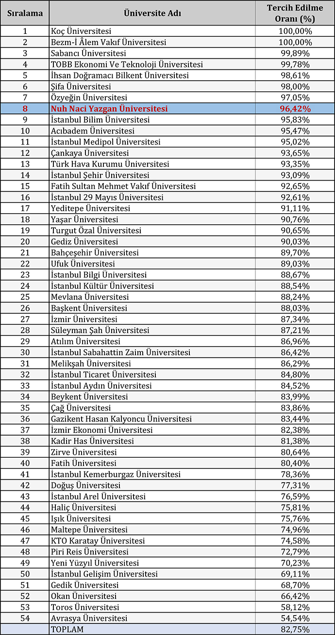 Vakıf Üniversitelerinin Tercih Edilme Oranları