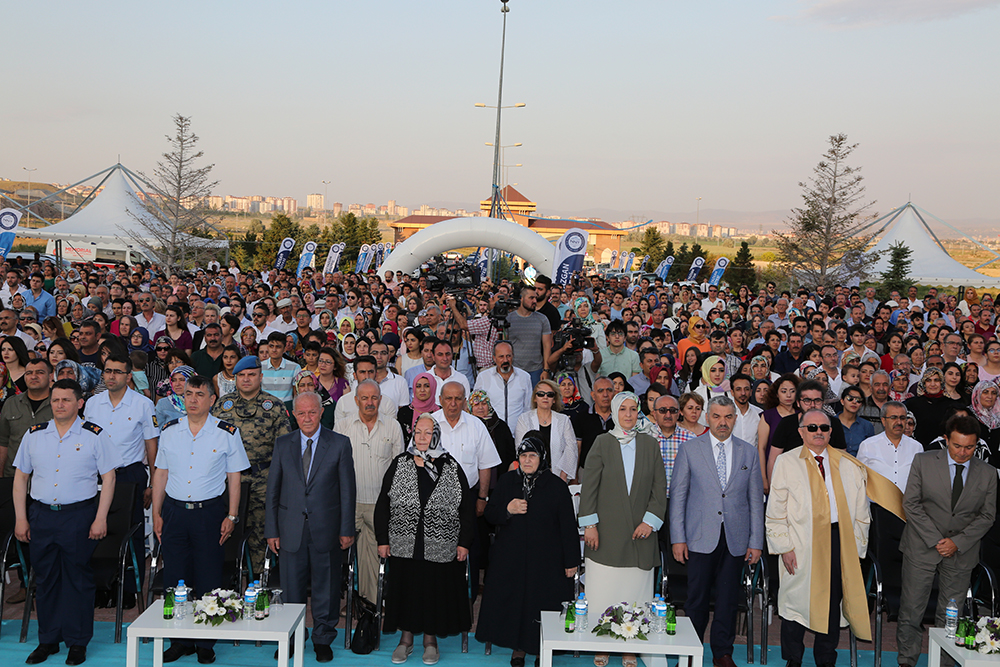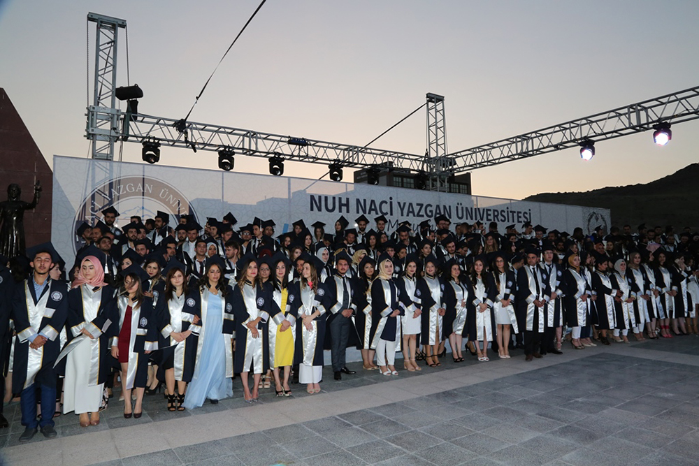Üniversitemiz Yerleşkesi Tören Alanında gerçekleştirilen mezuniyet törenine; 2. HİBM ve Garnizon Komutanı Hava Pilot Tuğgeneral Ercan Teke, 12. Hava Ulaştırma Ana Üst Komutanı Hava Pilot Tuğgeneral Selçuk Aygün, Büyükşehir Belediye Başkanı Mustafa Çelik, Erciyes Üniversitesi Rektör Vekili Prof. Dr. Karamehmet Yıldız, Abdullah Gül Üniversitesi Rektörü Prof. Dr. İhsan Sabuncuoğlu, Melikgazi Belediye Başkan Vekili Dr. Yüksel Kahraman, Erciyes Üniversitesi Mühendislik Fakültesi Dekanı Prof. Dr. Fatih Altun, Hacılar Belediye Başkanı Doğan Ekici, KOSB Yönetim Kurulu Başkan Vekili Şeref Özdemir, NNYÜ Mütevelli Heyet Üyeleri, Kayseri Yükseköğretim ve Yardım Vakfı Yönetim Kurulu Üyeleri, akademisyenler, öğrenciler ve veliler katıldı.