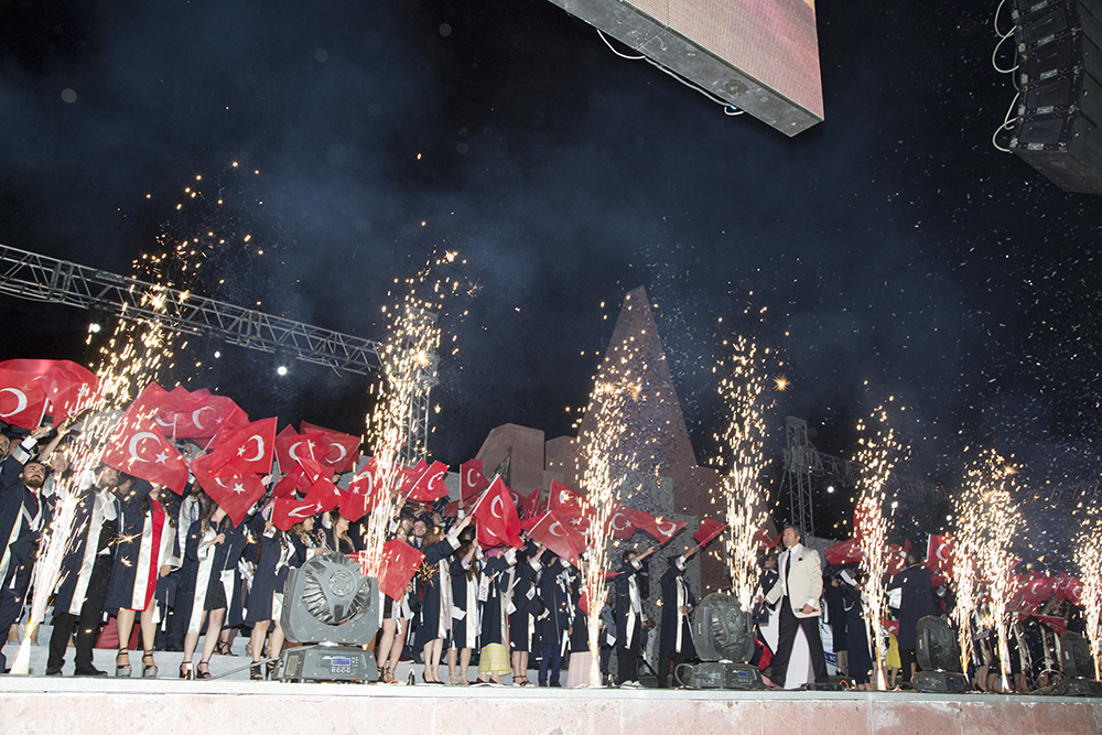 Mezuniyet töreni, öğrencilerin keplerini havaya fırlatmasıyla son buldu.