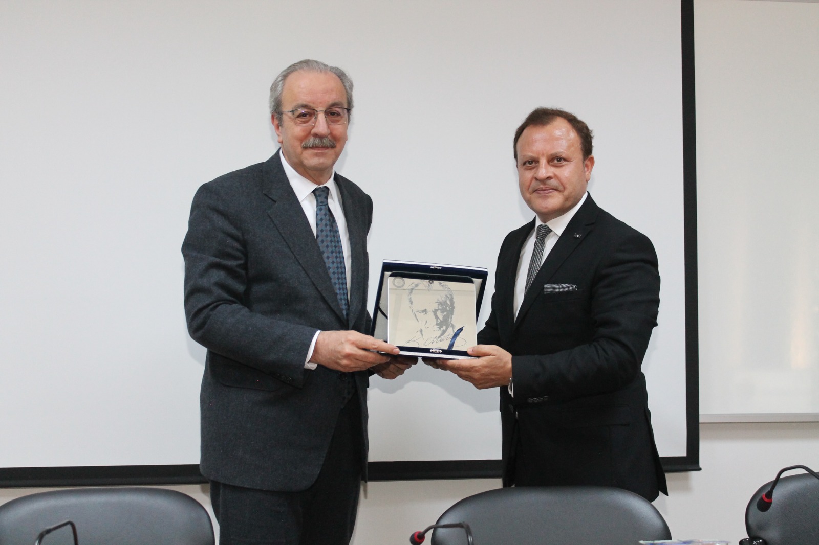 Orta Doğu Teknik Üniversitesi (ODTÜ) Kurumsal Büyük Veri Yönetim Koordinatörü Prof. Dr. Adem KALINLI, Üniversitemizde, “Yükseköğretimde Küresel Dönüşümler, Üniversite Sıralama Sistemleri ve Yükseköğretimde Stratejik Yönetim” konulu bir sunum gerçekleştirdi. Üniversitemiz Mühendislik Fakültesi Konferans Salonu’nda düzenlenen programa Rektörümüz Prof. Dr. Ahmet Fazıl ÖZSOYLU, dekanlar, ve öğretim üyeleri katıldı. Soruları da cevaplandıran Prof. Dr. Adem KALINLI’ya sunum sonunda Rektörümüz Prof. Dr. Ahmet Fazıl ÖZSOYLU tarafından plaket takdim edildi.