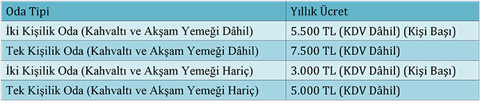 2015-2016 Eğitim-Öğretim Yılı İçin Yurt Ücretleri
